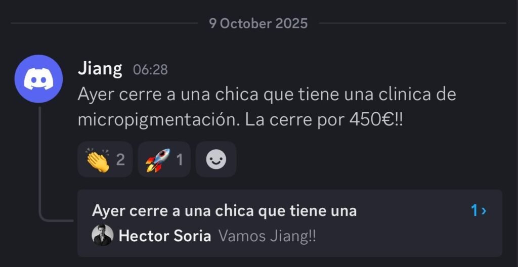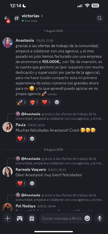 YouTube Newsletter Testimonios Sobre nosotros YouTube Newsletter Testimonios Sobre nosotros Testimonios Javi (Génesis) 23.000 €/mes en 13 mesesMira su entrevista → Laura Vendrell +60.000€ facturación anual en 12 mesesMira su entrevista → David M 7.000 €/mes en 8 mesesMira su entrevista → Sergio y Pablo 9.000 €/mes en 5 mesesMira su entrevista → Yeray Viviendo en Bali+68.000€ facturación anual en 10 mesesMira su entrevista → Anastasia +48.000€ facturación anual en 11 mesesMira su entrevista → Gabi +70.000€ de facturación añadidos para sus clientesMira su entrevista → Marta y Karmele Entraron facturando 500€/mes, actualmente en +11.000€/mesMira su entrevista → Resultados Pol Resultados Vanesa